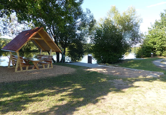 Diese tolle neue Sitzgruppe an der Bootsanlegestelle haben Karl Hellwig und Jessica Giese gebaut.